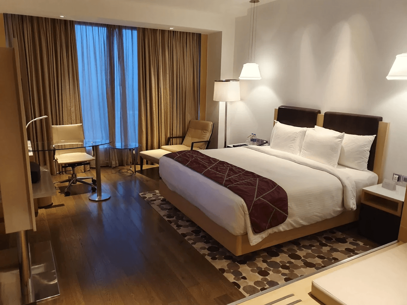 Convention-focused luxury hotel, preferred during exhibitions.